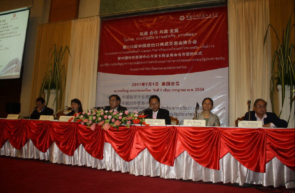中国驻宋卡总领事王灿芬、宋卡府副府尹潘蓬、中国对外贸易中心董事会办公室副主任陈秋茹、宋卡府总商会主席素拉差、合艾侨团联合会主席方志雄等出席推介会并致辞。大家一致表示,要充分利用好广交会作为“全球最佳一站式采购平台”的独特优势,以中国对外贸易中心首次派团访问泰南地区为契机,进一步推动泰南工商界与中国的经贸交流与友好合作。商会主席素拉差明确表示,将认真考虑组团参加今年10月份举办的第110届广交会。王在致词中强调中泰两国政治友好互信,经济合作互补性强;中国与泰南地区的经贸合作发展势头良好,存在着巨大的市场开拓空间,希望泰南地区商家抓住中国对外贸易中心团组访问宋卡府的机会,充分利用广交会平台,积极捕捉商机,进一步推动中国与包括宋卡府在内的泰南地区的经贸交流与合作。