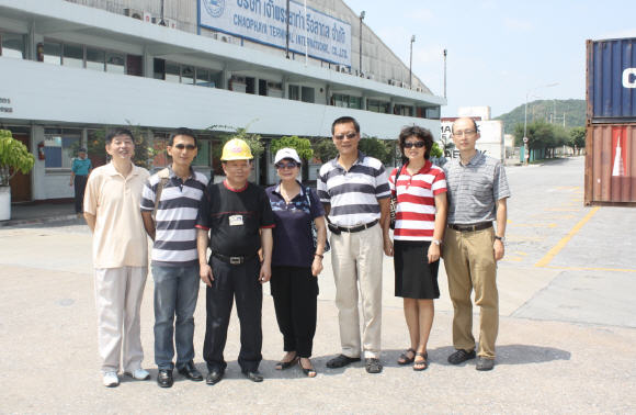 在与港务局负责人及中方管理人员座谈时,大家详细了解了宋卡港的发展历史和运营现状。据介绍,宋卡港于1988年底投入运营,上世纪90年代初聘请上海港务局专家负责经营管理迄今,目前是泰南地区最大的深水港和货物进出口码头,年货物吞吐量近180万吨,港口主要出口货物包括橡胶及其制品、冷冻海鲜、罐装食品、家具半成品等,主要进口货物有冷冻金枪鱼、化肥、机械设备、钢管等。近年来,宋卡港与中国的货物往来不断增加。
